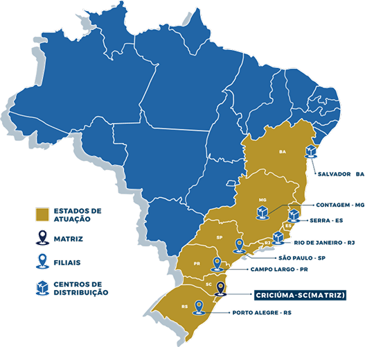 Contamos com filiais localizadas em cidades estratégias das regiões Sul e Sudeste.